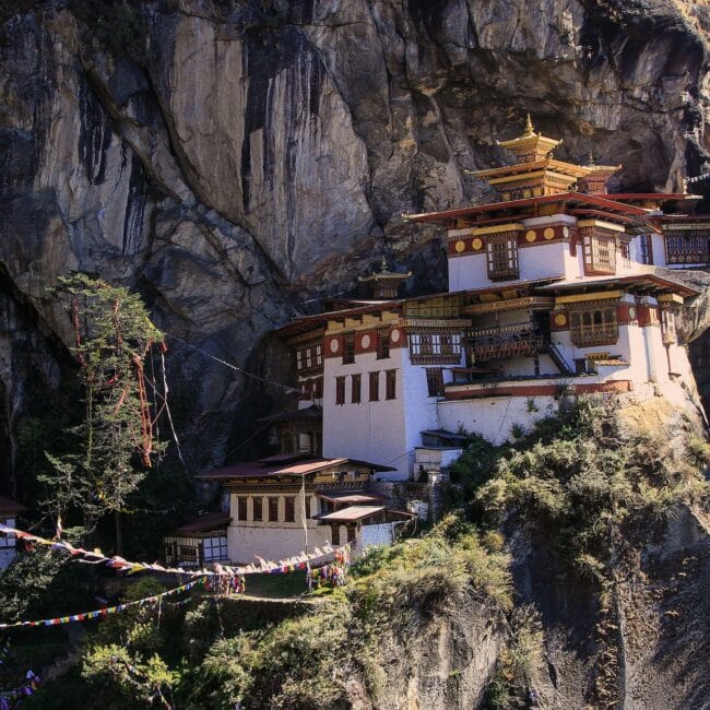 The next morning, you will hike up to view one of Bhutan’s most dramatic monuments, the Taktsang Goemba, more commonly referred to as the Tiger’s Nest, built on a sheer cliff face at a height of 2,950m (9,678ft). Note: For those who need assistance on the climb, mules and donkeys will be on hand. Your guide will check in advance if you would like to avail of this service.
