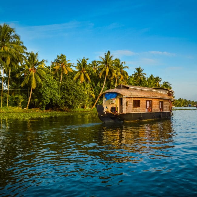 After breakfast, you will drive to Alappuzha boat jetty (approximately 1.5 hours, excluding stops). On arrival, you will board your private deluxe houseboat to journey along Kerala’s famed backwaters.