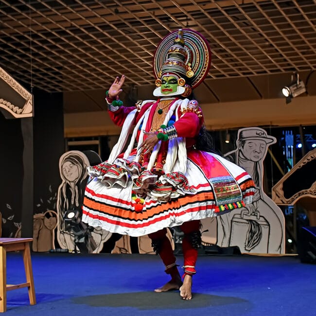In the evening, you will attend a private Kathakali dance performance at a local theater. An Indian dance-drama, Kathakali is usually performed in front of a Kalivilakku (“kali” = dance, “vilakku” = lamp).